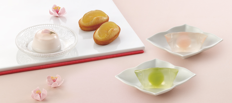 2種類のフルーツわらび餅と春の和菓子を詰め合わせました。季節の贈り物におすすめです。