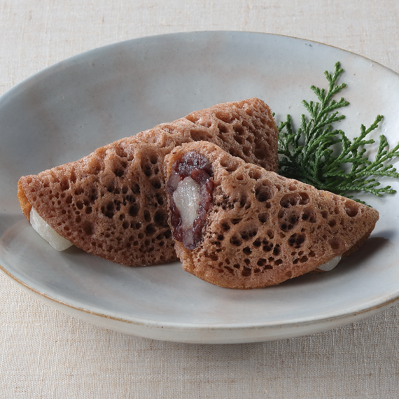 じっくり炊き上げた粒あんと求肥を挟みました。生地には小豆皮の粉末を練り込み、滋味深く仕上げております。