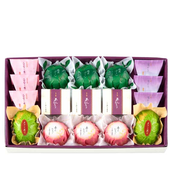 - 白雪の舞3・メロンの果2・あんとろり3・抹茶ぷりん3・季のいちご3・清水かげ3