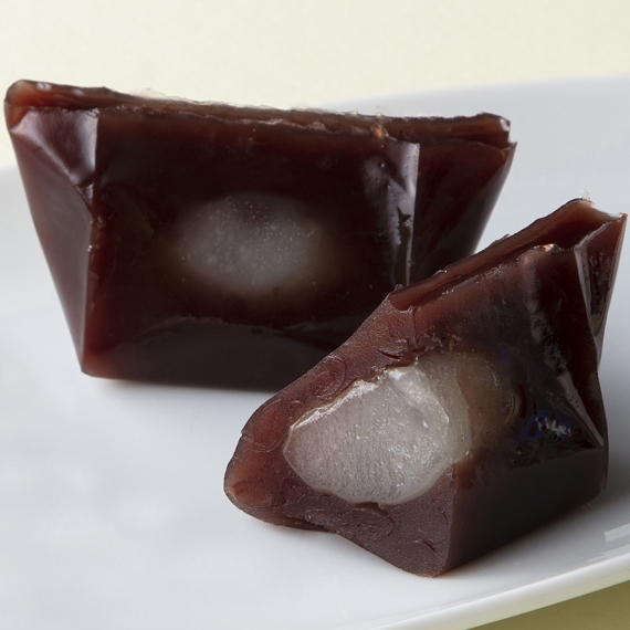 艶やかに炊き上げた小倉羊羹に、やわらかな求肥をとじ込めました。