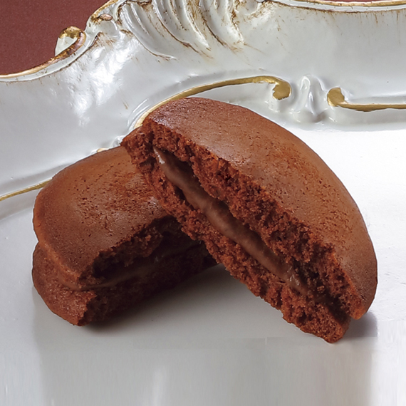 なめらかなチョコレートクリームを挟んだ、ふんわり食感のどら焼き。