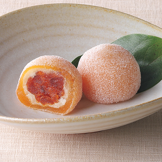 細かくきざんだ国産干柿を柚子あんと求肥で包み、ころんとした姿に仕上げました。