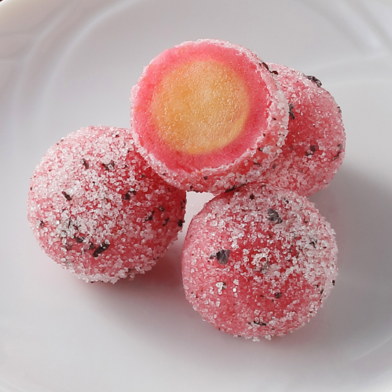 外側のあんは梅の酸味を生かしたあん、中のあんは完熟梅の旨みをとじ込めた優しい味わいのあんです。
